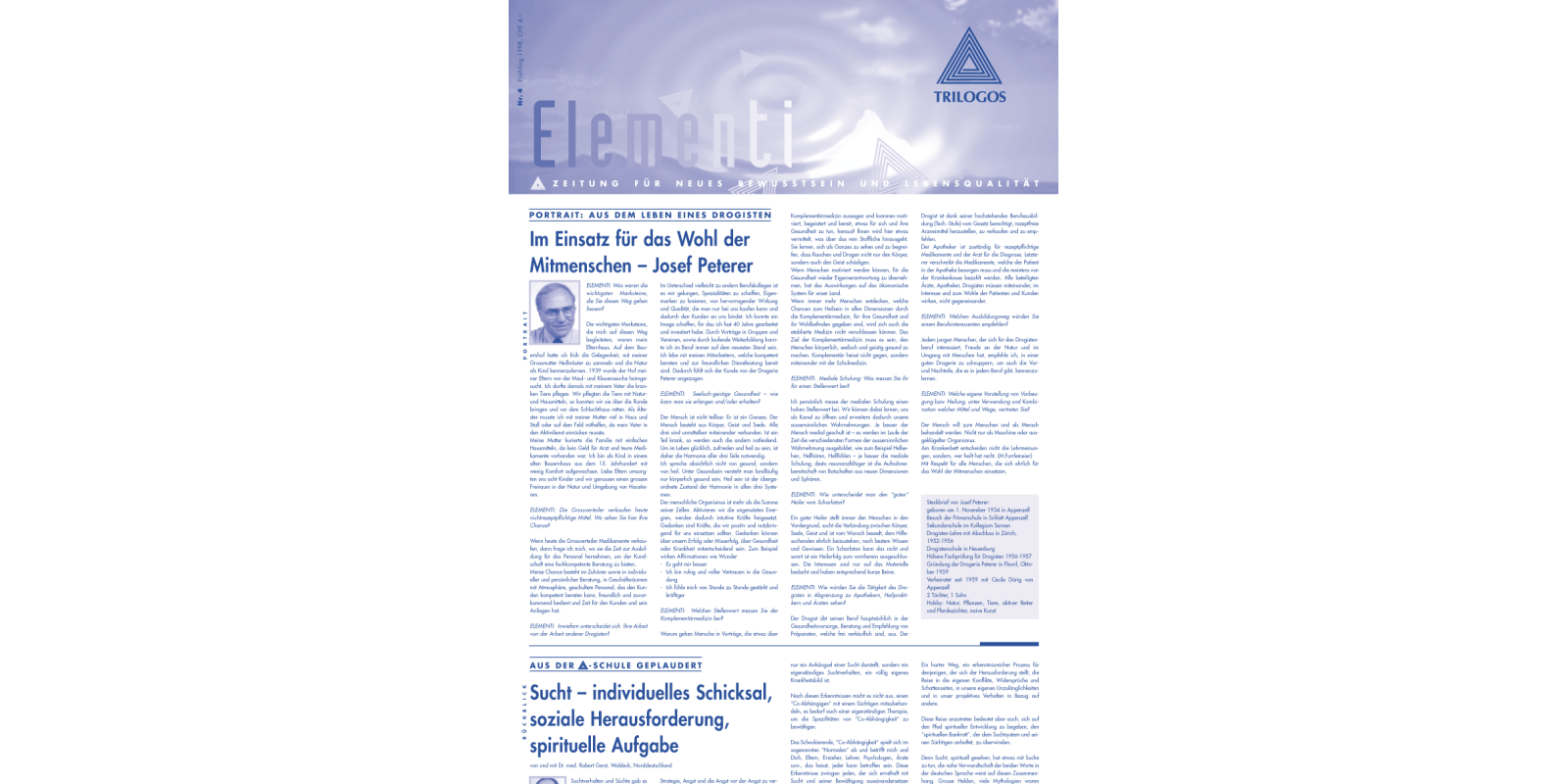 Die ELEMENTI, unsere digitale TRILOGOS Hauszeitung, gewährt seit 1996 einen Rückblick sowie Ausblick in unsere Schul-Tätigkeit.