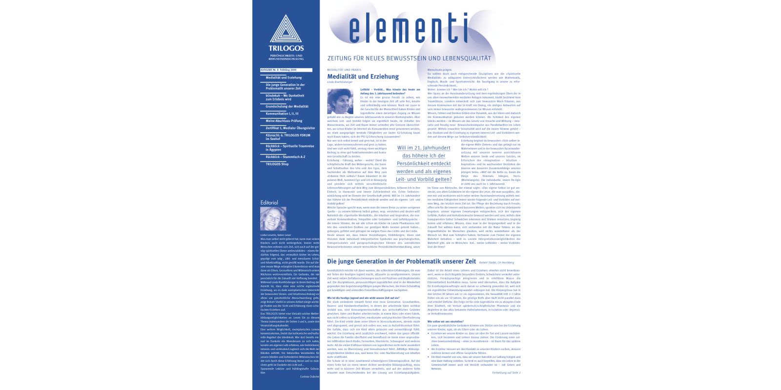 Die ELEMENTI, unsere digitale TRILOGOS Hauszeitung, gewährt seit 1996 einen Rückblick sowie Ausblick in unsere Schul-Tätigkeit.