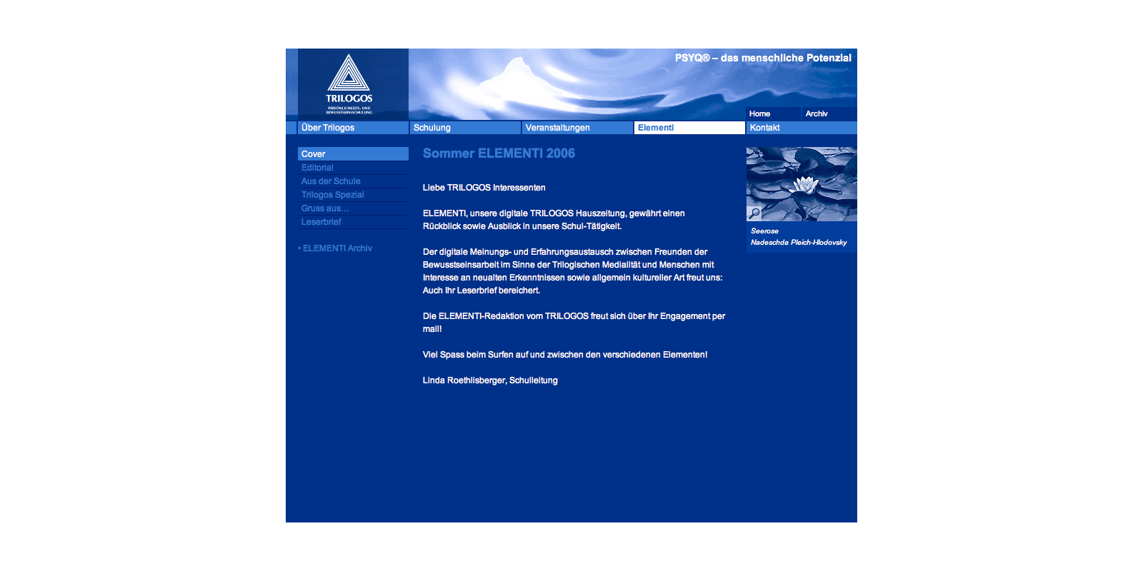 ELEMENTI, unsere digitale TRILOGOS Hauszeitung, gewährt seit 1996 einen Rückblick sowie Ausblick in unsere Schul-Tätigkeit.