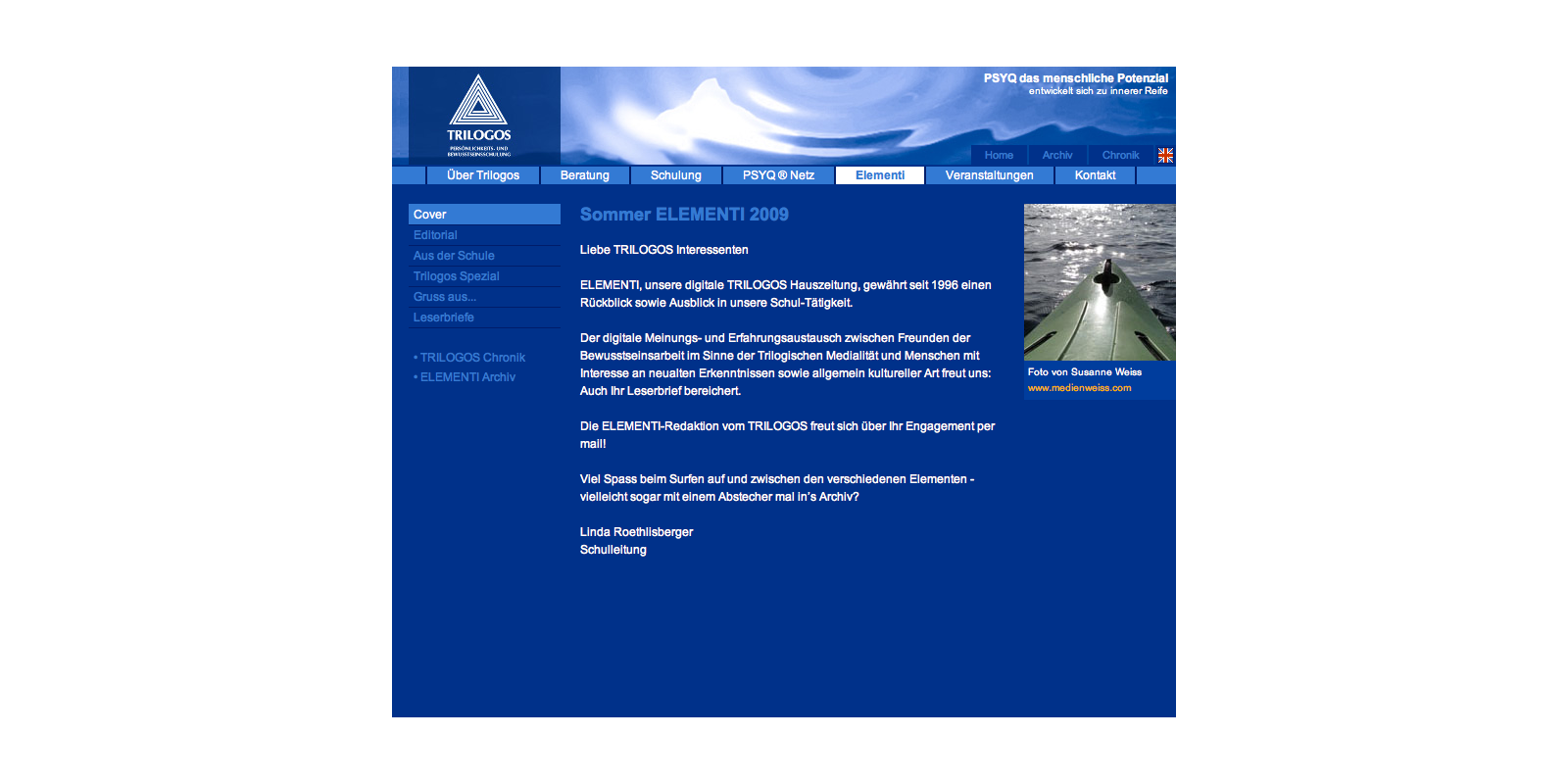 ELEMENTI, unsere digitale TRILOGOS Hauszeitung, gewährt seit 1996 einen Rückblick sowie Ausblick in unsere Schul-Tätigkeit.