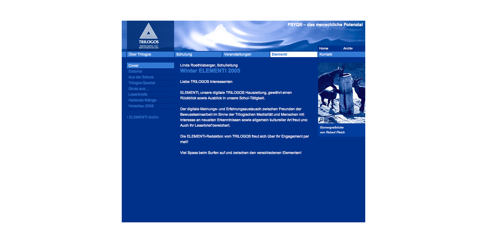 ELEMENTI, unsere digitale TRILOGOS Hauszeitung, gewährt seit 1996 einen Rückblick sowie Ausblick in unsere Schul-Tätigkeit.